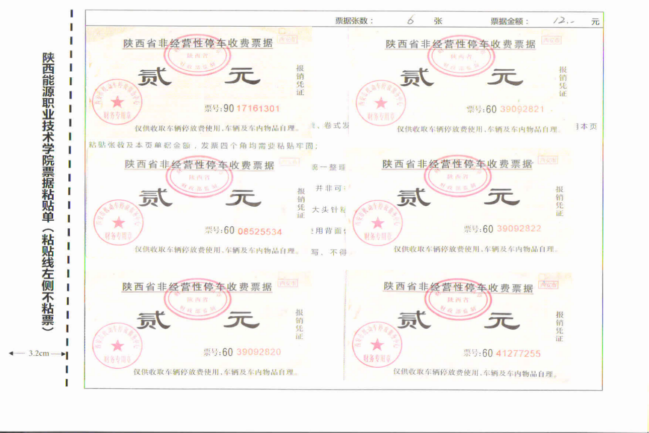 为保证票据粘贴得既美观平整,又牢固扎实,应采用液体胶水粘贴,请勿采用固体胶、透明双面胶、订书针等。