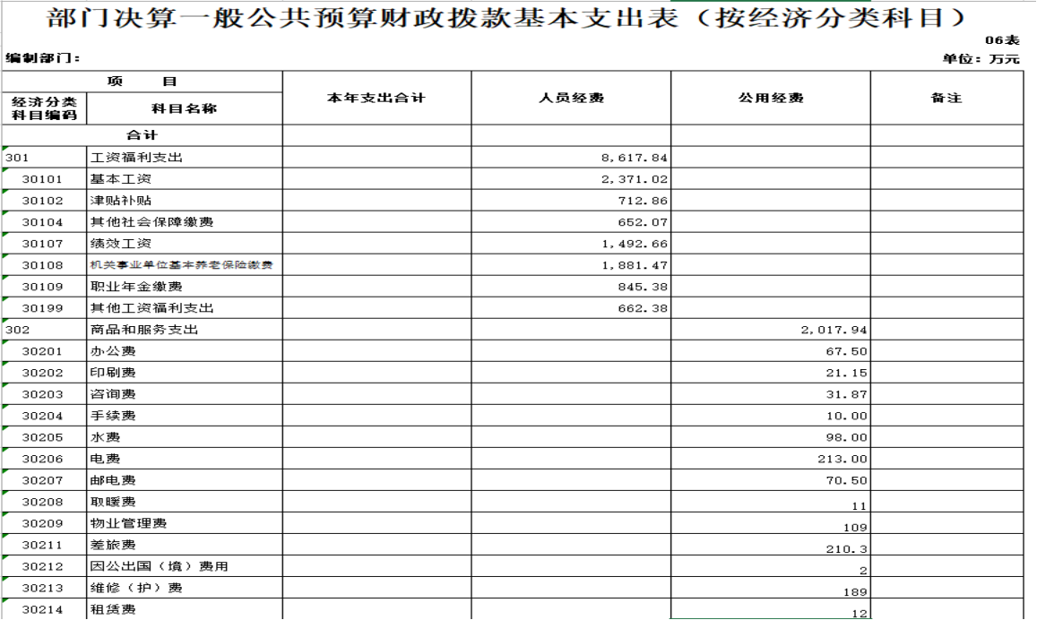 表6 部门决算一般公共预算财政拨款基本支出表(按经济分类科目)