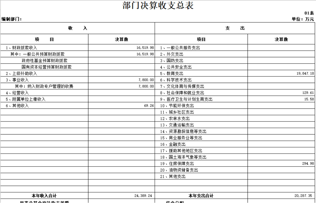 表1 部门决算收支总表