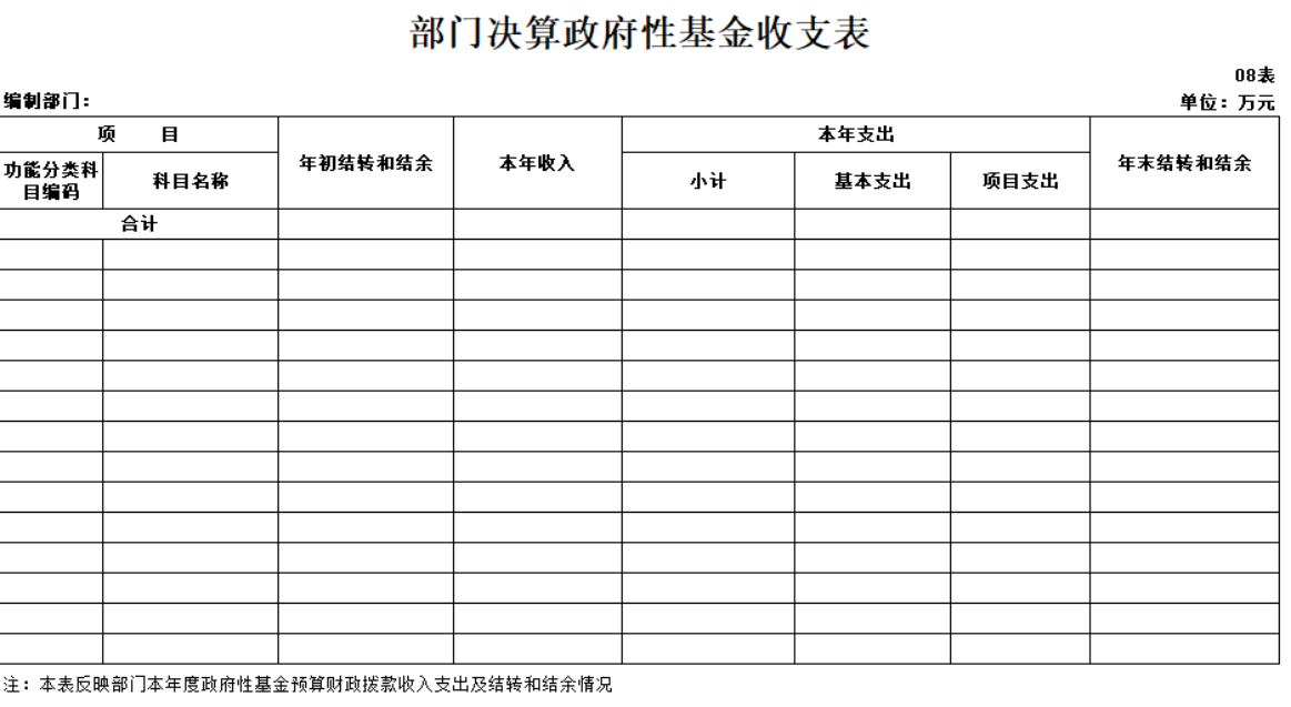 表8 部门决算政府性基金收支表