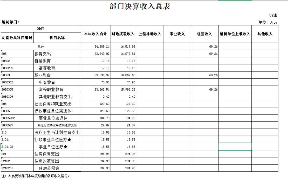 表2 部门决算收入总表
