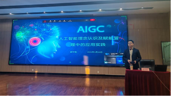 上午,科研信息处郝宇刚老师以“人工智能理念认识及赋能管理中的应用实践”为题,详细介绍了人工智能的发展历程,人工智能在教育、金融、医学等行业的显著成就以及目前智能教学系统在教育领域已实现个性化授课,虚拟教学助手和智能学习系统对学生学习体验具备显著的提升能力。他结合教学管理实际,还分享了AI交互技巧、提示词规则及豆包、通义万相等实用AI工具,呼吁教师养成使用AI和工作数据化的习惯。