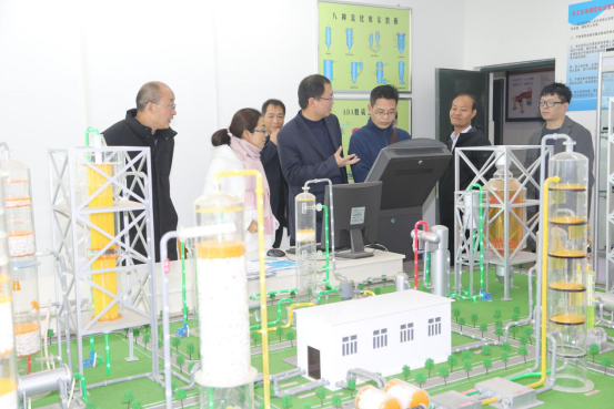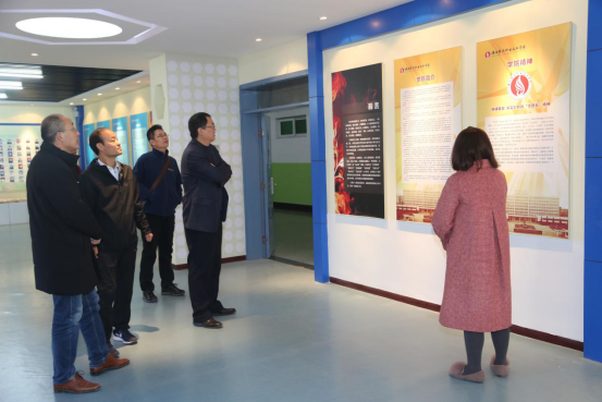 随后,郭新亮一行在党政办主任任向明的陪同下,参观了校园操场、食堂、实训楼,重点参观了机械创新实训室、3D打印实训室、数控仿真实训室、钳工实训室、火电厂仿真实训室、煤化工仿真工厂、化工模型室,并聆听了化工学院教师周少丽进行的现场模拟讲解。最后一行人参观了学校校史馆,更深入了解了学校发展的历史,学习借鉴学校办学经验。