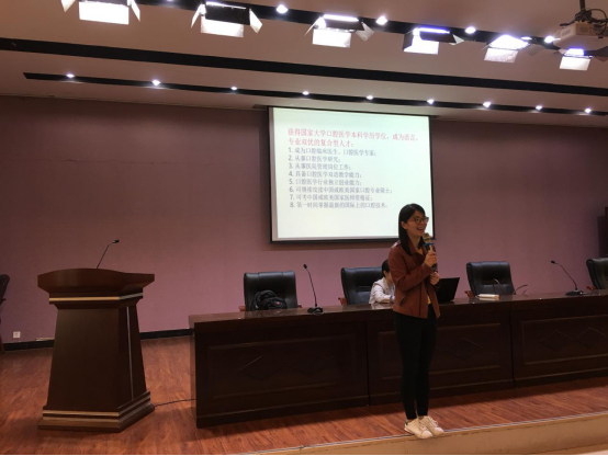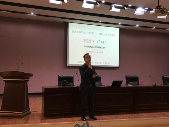 会上,张多向学生介绍我校与菲律宾国家大学的校际友好合作关系,并提到口腔医学技术专业学生专升本的途径,简要介绍本次项目可选择的升本专业、留学费用、项目优势和意义,让学生对国外留学有了更进一步认识,希望大家通过本次宣讲,对国家大学的办学情况、专业特色、课程设置等况有更深的了解。