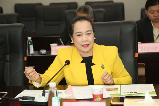 泰方代表Boonsong Champabhoti、Chompunuch Buabangsorn在致辞中介绍了曼谷职教中心下属学院、专业设置、课程开设、师资情况、人才培养等基本情况,以及与我校合作的背景、在中国合作的院校等,希望双方在教师短期培训、双学历项目等方面开展合作。