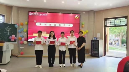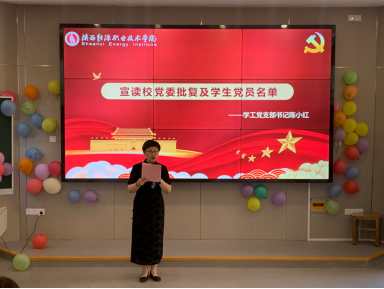活动在庄严雄壮的国歌声中拉开帷幕。学工党支部书记陈小红同志宣读校党委批复及学生党员名单。