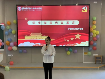 护理2008班齐怡佳同志作为学生党员代表发言。她表示要把入党誓词内化于心、外化于行,加强党的理论学习,提高自身政治素养;在日常的工作中积极发挥先锋模范带头作用,勇于担当负责,积极主动作为,用实际行动践行全心全意为人民服务的根本宗旨,做一个有理想、有担当、有本领的时代新青年。