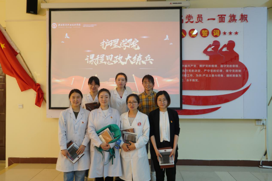 为深入贯彻习近平总书记关于教育的重要论述特别是在学校思想政治理论课教师座谈会上的重要讲话精神,贯彻落实中办国办《关于深化新时代学校思想政治理论课改革创新的若干意见》、教育部等九部门关于印发《职业教育提质培优行动计划(2020—2023 年)》等文件要求,进一步做好 2021 年的课程思政教师“大练兵”工作,打造课程思政精品课堂,孵化精品项目,推动护理学院课程思政教学工作高质量发展。护理学院于2021年5月19日在党建工作室开展护理学院课程思政大练兵活动,护理学院全体教师参加。