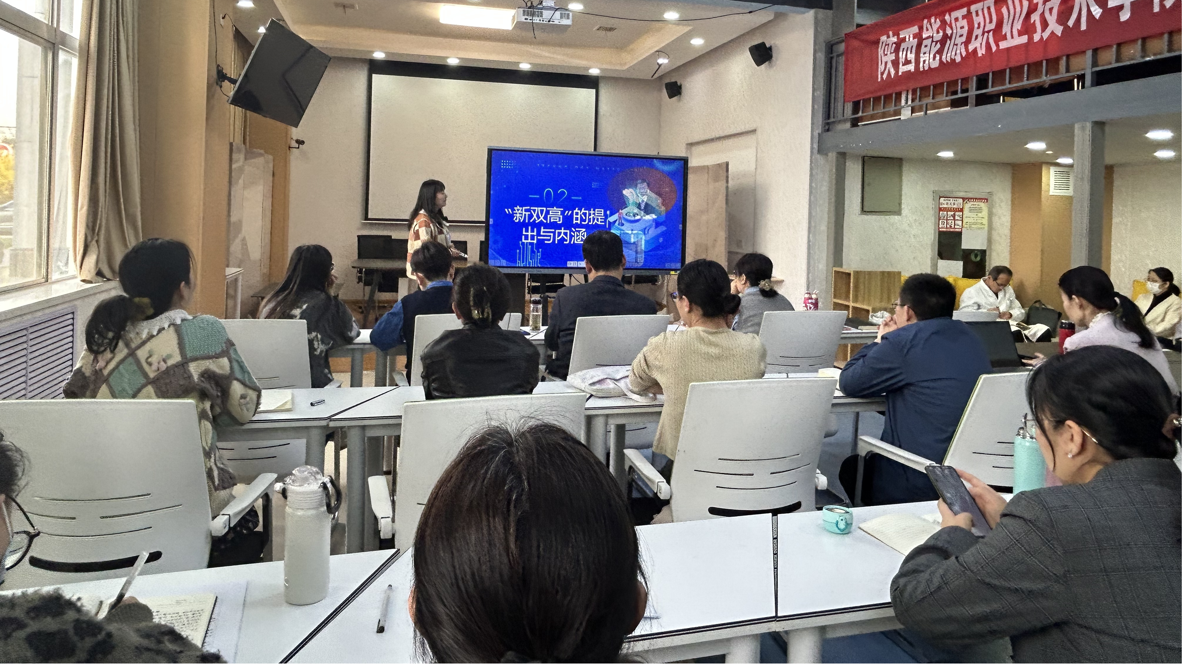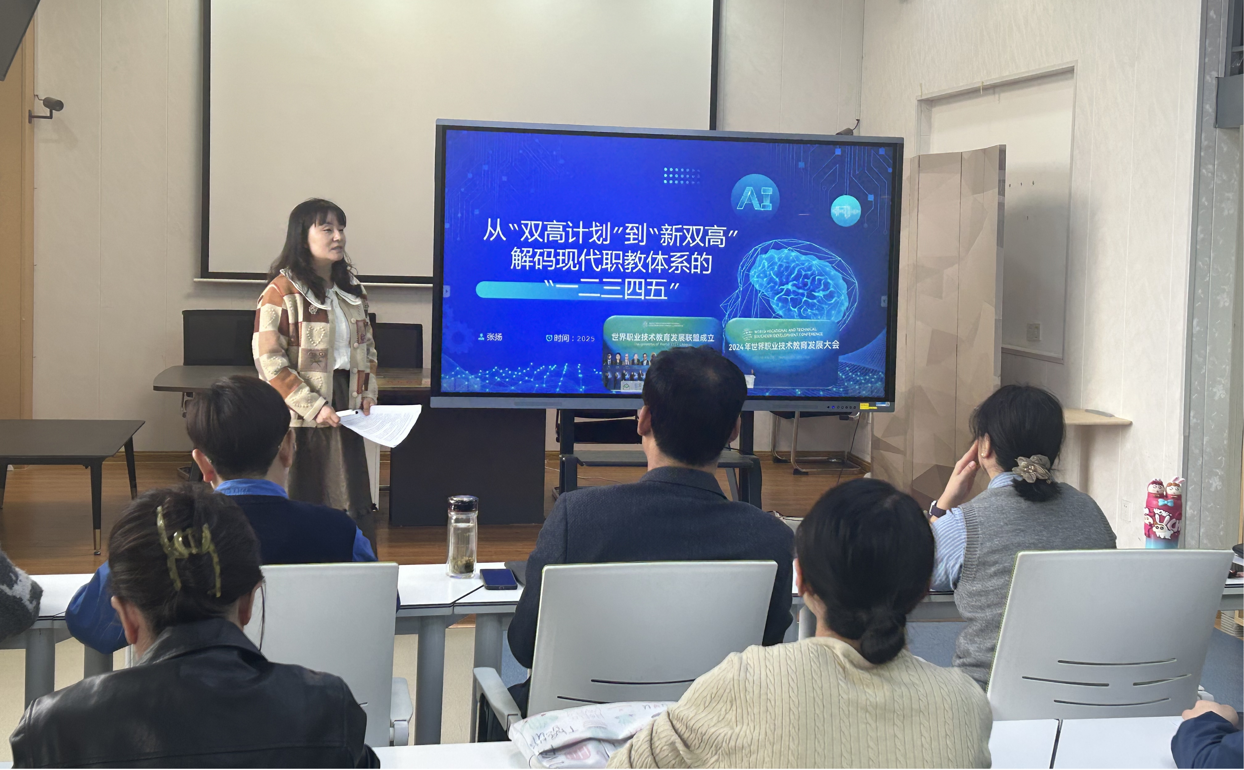 为深入贯彻落实职业教育改革精神,探索“双高计划”到“新双高”的发展路径,提升教师教学质量。医学护理学院于2025年3月26日,在临潼校区教师发展中心召开了解读职教政策专题学习讲座。本次讲座主题为《解码职业教育的“一二三四五”》,由医学护理学院副院长张扬主讲,全体教师参加。