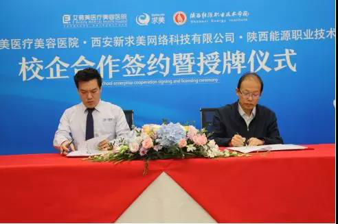 随后,李耀辉副校长和张孟志院长代表双方单位签署了《陕西能源职业技术学院西安艾薇美医疗美容医院校企合作框架协议》。
