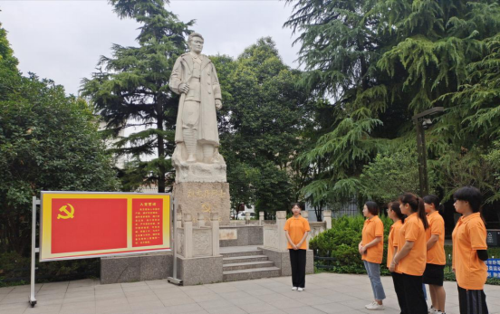 西安革命公园始建于1927年,全国重点文物保护单位、“党史教育基地”和“西安市青少年爱国主义教育基地”,园中修建有陕北革命根据地的建立者谢子长和刘志丹的雕塑,著名爱国将领杨虎城将军的铜像,以及为纪念北伐战争前夕坚守西安死难军民的建筑和雕像等。在谢子长和刘志丹的雕塑前,团队成员带领调研团学习两位烈士的生平事迹,了解他们为革命战斗牺牲的故事。