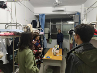在走访过程中,班主任和辅导员老师首先了解学生的生活情况,仔细查看学生宿舍的生活设施、清洁卫生、物品摆放、宿舍环境以及用电安全等方面的情况。其次提醒学生要遵守学校的住宿规定,提高自身的安全意识,注意防火、防盗、寝室用电安全以及自身财务安全等方面。特别是在电器使用方面,禁止使用大功率的违章电器,确保安全用电。最后希望党员、积极分子、学生干部在宿舍内充分发挥先锋模范作用,主动为广大同学排忧解难,带头维护学生宿舍的秩序,引领学生宿舍的文明之风。