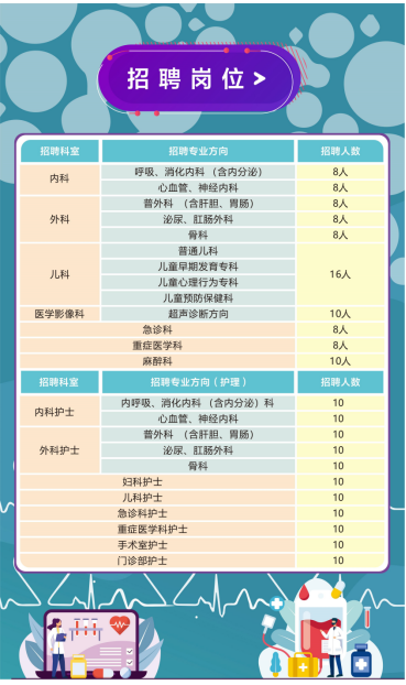 医院建设发展需要现在面向社会诚招各类医学类人才,具体招聘岗位及要求如下: