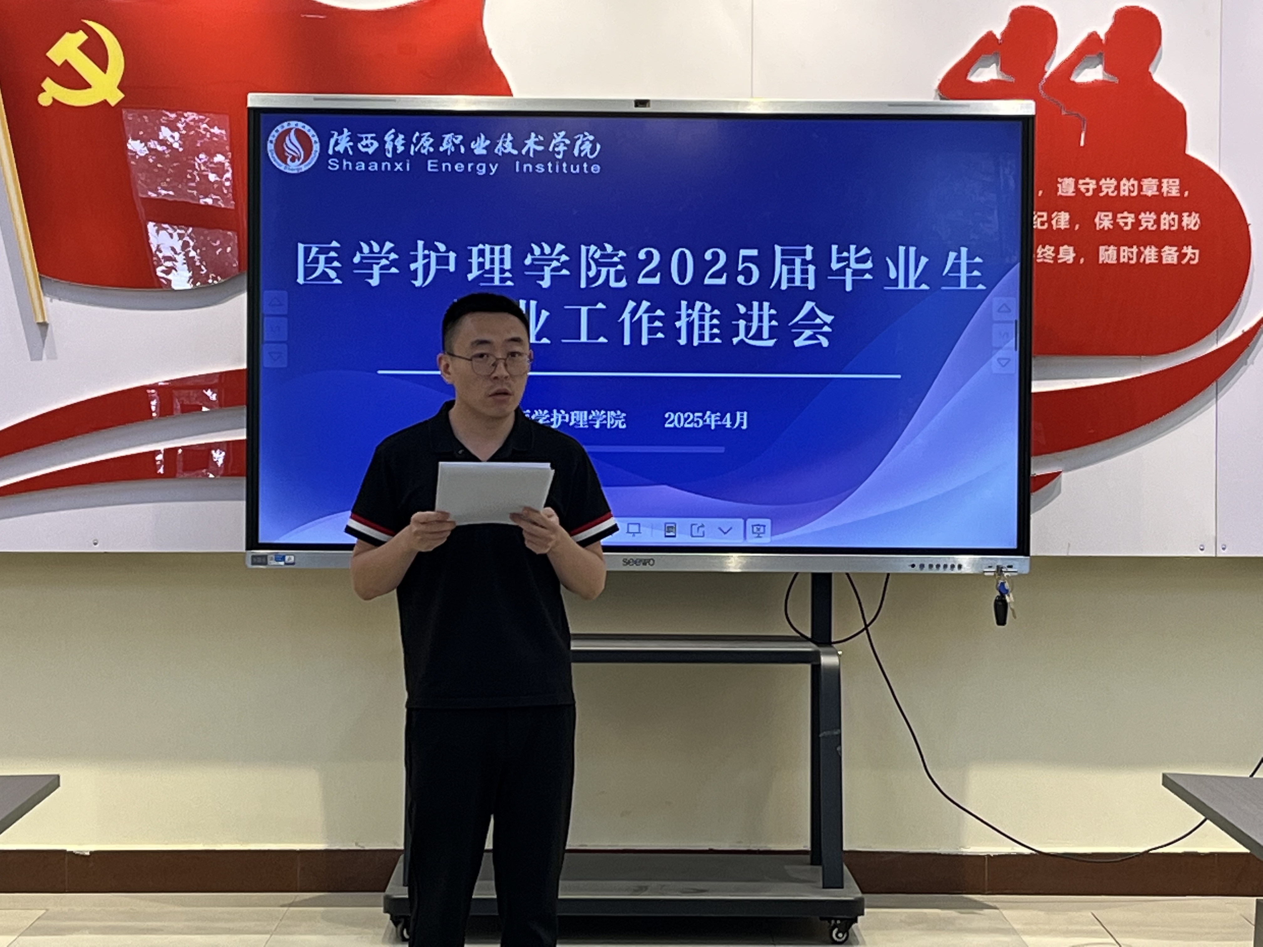 会上,党总支副书记陈小红通报了各班级截至目前的最新就业率,通过数据对比,深入剖析各班级就业现状。她要求全体班主任积极行动,主动“带生寻岗”,针对不同学生群体实施分类指导,以扎实举措推动 2025 届毕业生就业工作稳步开展。