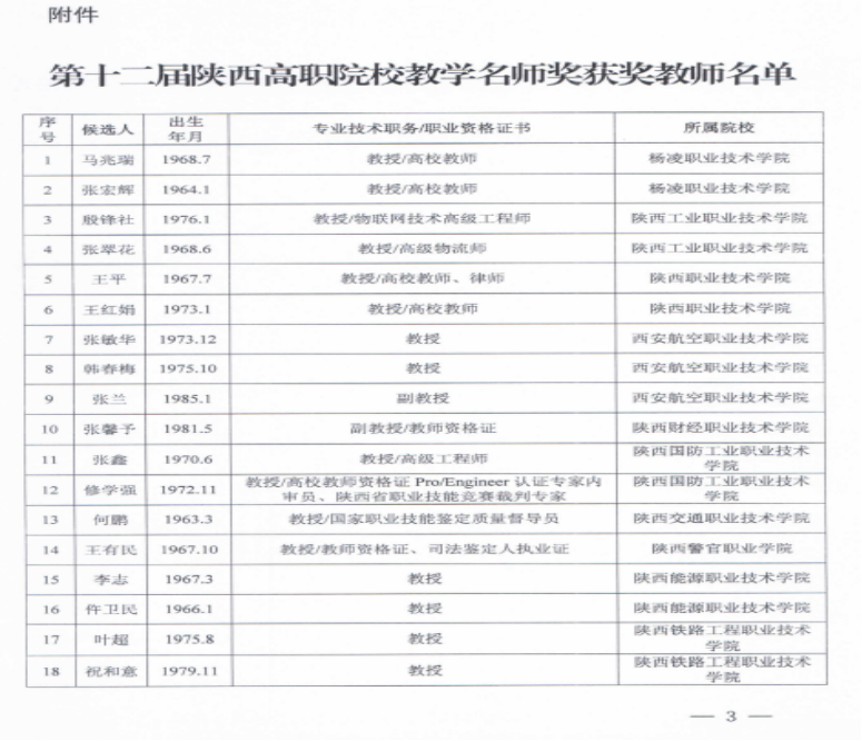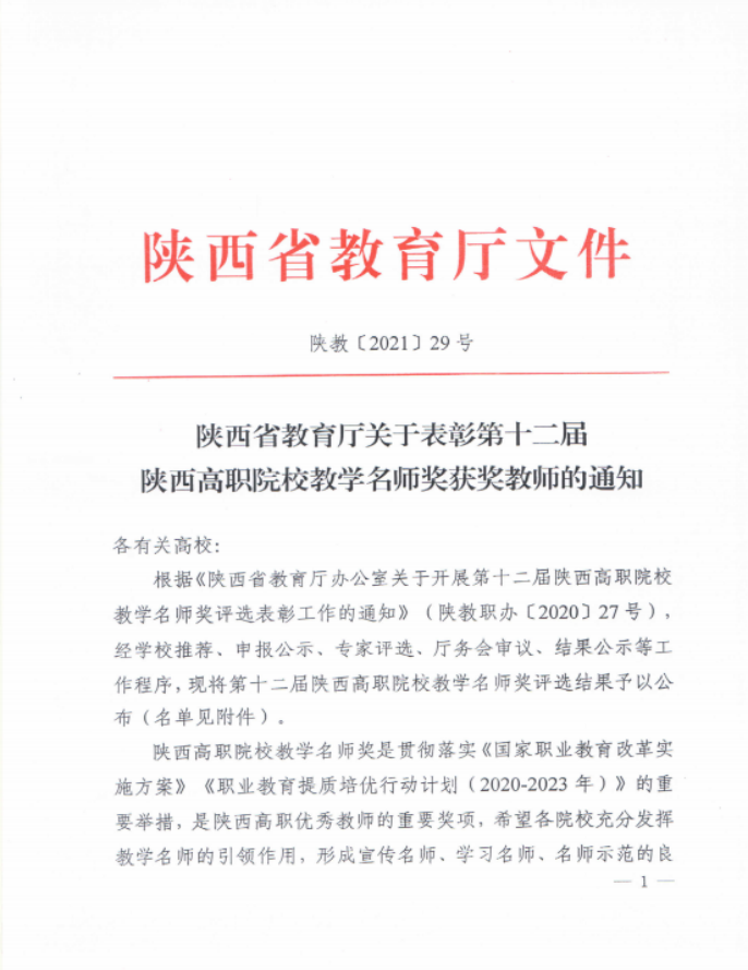 省级教学名师奖获奖文件