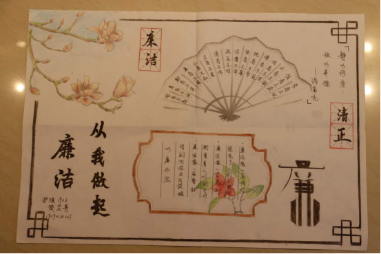 本次活动得到全院学生的热情参与,学生以倡廉洁、行勤俭、树清风,讲法治为视角进行创作,共收到作品50余件,参选作品内容丰富,形式多样,包括书法、绘画、海报、短视频等。经过学院认真评选,最终有10件作品获奖,其中护理1909乔欢欢获得一等奖,护理1908程远、张怡倩获得二等奖,护理1909王丹妮、护理1915刘璇、护理1903黄芷菁获得三等奖,护理1907赵生妍、助产1904何佳灵、护理1912张欢、护理1916张佳乐、王可瑶、常乐获得优秀奖。