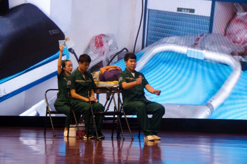 此次参演的节目--情景剧《“救”在你身边》,主要内容表现的是,现场抢救一例下肢骨折合并失血性休克患者的过程。医院120接警后迅速赶赴急救现场,在舞台上为我们上演了一出感人的敬佑生命、救死扶伤、医护工作者全心全意为病人服务的美丽画面。整个演出,过程紧凑、严谨、规范,又不失幽默,表演结束赢得经久不息的掌声。经五名评委独立打分,最终获评92分,以总分第二名的好成绩荣获二等奖。