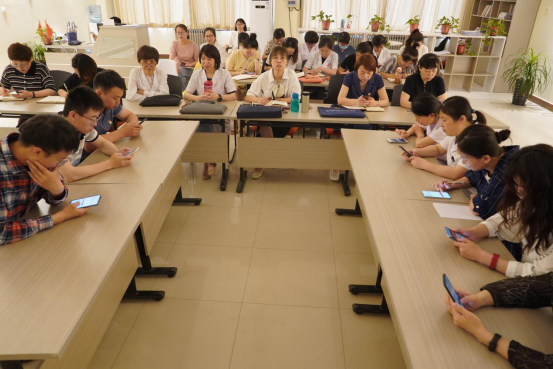 前期,护理学院党总支要求全体教职工认真学习“四史”、积极备赛,并以党支部为单位层层选拔,最终推选出王亚妮、刘丽、刘寒森、李娟、赵婷、倪国斌、李世奇、雷东强、赵晨等9位老师进入护理学院党总支“四史”竞答擂台赛。此次竞答擂台赛依托中国大学生在线微信公众号“四史”问答栏目,参赛老师进行“英雄篇”、“复兴篇”、“创新篇”和“信念篇”四个板块在线答题,同时,答题界面同步投屏到多媒体屏幕上,全体教职工集体观摩答题情况。