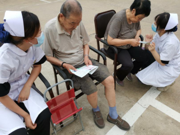 实践团成员为社区居民进行健康科普