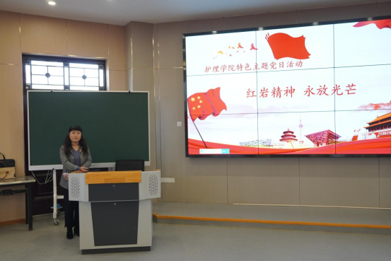 4月12日下午,护理学院开展了“弘扬红岩精神 谱写育人篇”特色党日活动之主题党课及分享交流会。党课主题为“红岩精神 世代传承”,由护理学院党总支副书记仵卫民在临潼校区东一阶梯教室讲授,会议由护理学院党总支书记王瑜主持,教师党员和学生党员参加了活动。