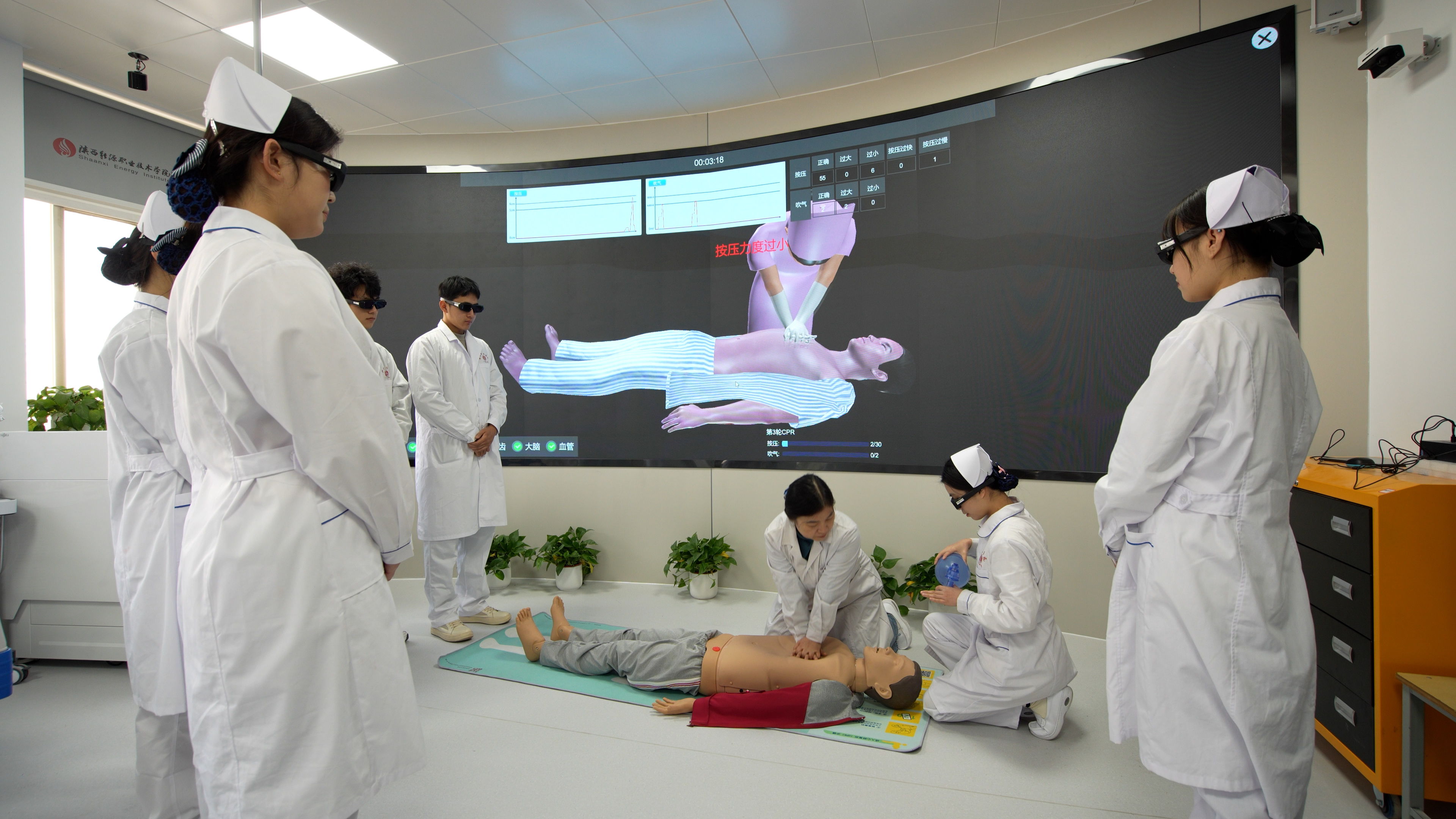 学院注重学生综合素质与实践能力培养,校内实训基地9000平方米,建有虚实结合护理技能实训室、智能居家照护实训室、智能母婴综合实训室、医学营养实训室等,校外实训基地与西安交通大学第一附属医院、西安医学院第二附属医院、西安荣华集团等40余家二甲级以上医院、10余家高端养老机构合作共建,与陕西健康医疗集团、陕西国金康养集团、陕西省核工业二一五医院、西安碑林区第三爱心护理院等单位签订订单班,联合培养人才,为培育学生创新思维、加强专业实践能力提供了有力保障。
