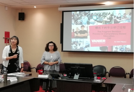 北美东部夏令时间2018年8月1日上午9:00(北京时间8月1日晚上21:00)学校赴加拿大干部访学团(简称SnyC20团)分组自行乘坐城市轨道交通工具(地铁)到达威尼尔学院接受安排的教学课程,经过了一天的时差调整,团员们精神抖擞,状态满满。威尼尔学院朱晓阳老师对SnyC20团的各位团员称赞表扬。