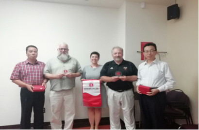 北美东部夏令时间8月7日下午13:00在授课教室,全体团员与威尼尔学院国际交流处负责人、相关行政负责人、部分授课教师进行了访学学习交流座谈会。双方就学习的感受和授课的内容进行了交流沟通。现场气氛热烈,踊跃发言问答,仔细体会对方分享感受。座谈会后,威尼尔学院校长John McMahon先生与SnyC20团全体成员进行了见面慰问。他首先表达了热情欢迎陕能院派团来校交流学习,同时还就威尼尔的校情、历史做了简要介绍。团员代表卢勇江、李志赠送了陕能院文化展品,学校副校长赵新法与John McMahon先生互相馈赠了友谊礼物并合影留念。