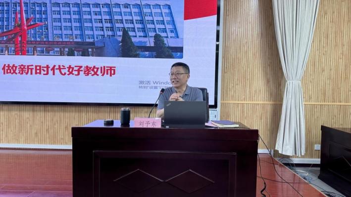 校党委书记刘予东以“立德树人 做新时代好老师”为主题,从教师、师德、寄语、人物四方面为新教师讲授如何成为一名合格的教师。要求新教师牢记为党育人、为国育才的初心使命,坚持立德树人根本任务,弘扬践行教育家精神,自觉加强个人师德涵养和职业道德,以高度的责任感和使命感投身教育事业,当好学生成长路上的“引路人”。