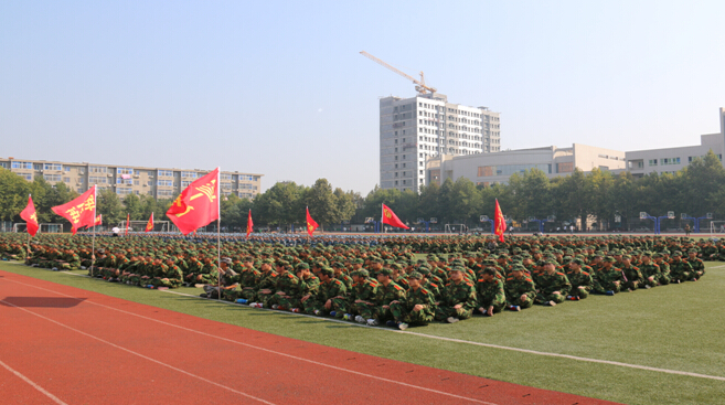 2015级新生军训动员仪式首先由党委副书记郭开龙同志作军训动员讲话。随后,武装部副部长张栋同志宣读了2015级新生军训实施方案。