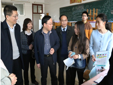 省教育厅学生处副处长张金玉(中)与毕业生亲切交谈