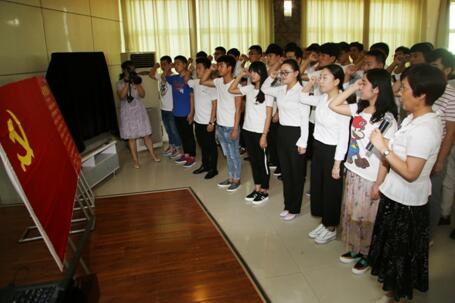 大会在嘹亮的国歌声中开始,首先进行新党员入党宣誓仪式,今年新入党的35名党员代表在组宣部部长杨笑琪同志的带领下面向党旗庄严宣誓,能源(建筑)工程系采矿1401班赵强代表新党员发言。