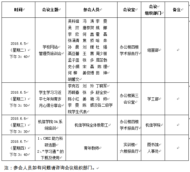 2018年6月4日至6月8日(第14周)会议室使用预通知