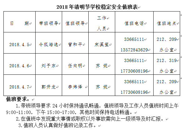 6.请根据工作需要,有关单位将本部门值班表于3月28日之前报送党政办公室审核。