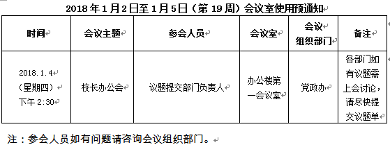 2018年1月2日至1月5日(第 19周)会议安排预通知