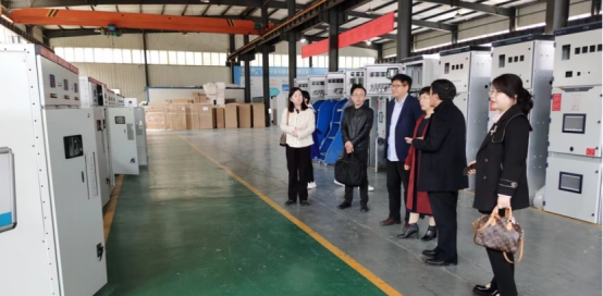 在华通电器董事长郝修明带领下,刘文青一行参观生产车间和产品展示,了解生产车间产线布局、精益化生产等。