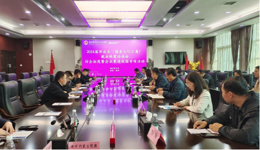 为强化二级学院深度参与,加强与用人单位的联系,做好学生与企业的桥梁,上午10点30分,煤炭与化工产业学院组织召开人才供需见面座谈会。学校副校长刘浩、招生就业处处长于涛、煤炭与化工产业学院党政负责人、教研室主任、专业学科带头人、全体毕业班辅导员、班主任及13家企业代表参加座谈,会议由煤炭与化工产业学院党总支副书记刘彦锋主持。