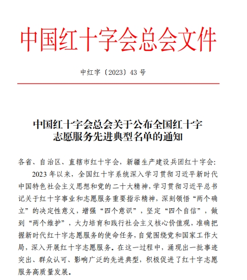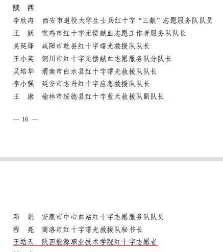 近日,中国红十字会总会发文对2023年度全国红十字志愿服务先进典型进行表彰,我省共有10人获批此项荣誉,我校团委书记王皓天入选,为陕西高校唯一入选个人。