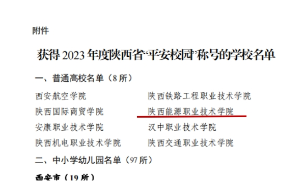根据《中共陕西省委教育工委 陕西省教育厅关于授予西安航空学院等105所学校2023年度陕西省“平安校园”称号的决定》(陕教工函〔2024〕95号),我校荣获2023年度陕西省“平安校园”称号。