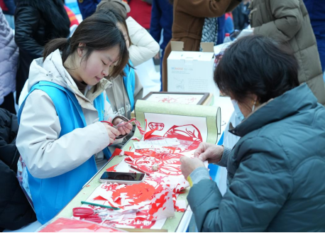 活动现场,团省委书记徐永胜同志在我校非遗传承站台前驻足观看同学们精彩的剪纸技艺,同时希望同学们能够好好传承这一技艺,吸引更多的爱好者参与其中。