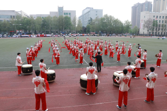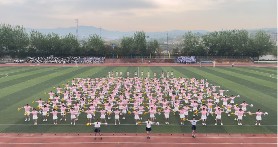 开幕式上,各二级学院师生展现积极昂扬的精神风貌,以安塞腰鼓和团体操等形式进行开幕式表演。