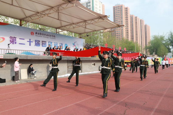 上午8时,伴随着激昂振奋的运动员进行曲,国旗护卫队、彩旗队、裁判员方阵和各二级学院代表队方阵依次入场接受检阅,运动会伴随着庄严的升国旗仪式拉开帷幕。