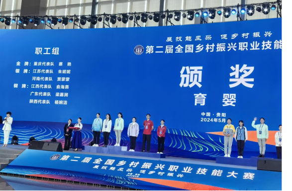 5月8日至10日,第二届全国乡村振兴职业技能大赛在贵阳市举办。我校参赛选手人文学院教师杨婉洁荣获育婴赛项职工组铜牌。