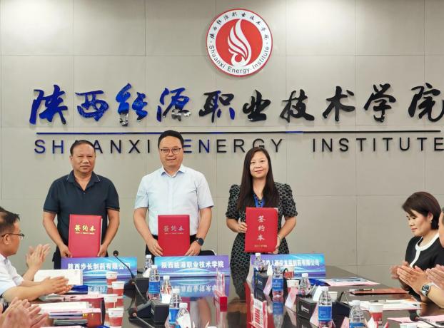 会上,朱忠军与西安中医脑病医院党委书记、院长宋虎杰携手完成了现代康养产教融合实践中心的签约揭牌,为康养教育与实践的深度融合树立了新的里程碑;随后,朱忠军与陕西健康医疗集团有限公司陕汽医院党总支书记、院长张舒婷、澄合矿务局中心医院院长张天奇签订了校院合作协议,进一步拓宽了校企合作的领域;朱忠军与医药行业领军企业陕西步长制药有限公司副总经理戚咸利及清华德人西安幸福制药有限公司人力资源总监田菁签署了校企战略合作协议。这一系列合作预示着学院将继续深化校企合作,与医药和医疗装备产业链携手,在药品研发、生产、市场推广等关键环节进行全面而深入的合作,共同绘制康养行业创新发展的蓝图。