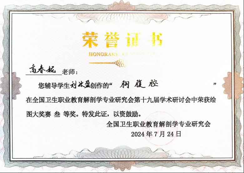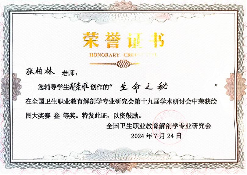 此次我校学生作品在众多院校参赛作品中脱颖而出,展现了我校人体解剖学的教学水平和医学生的专业素养。本次比赛科普了解剖学文化,激发了学生对解剖学知识的兴趣,提高了学生创新能力和审美能力,夯实了学生的医学知识基础,进一步推动了医学科普与人文艺术的融合。