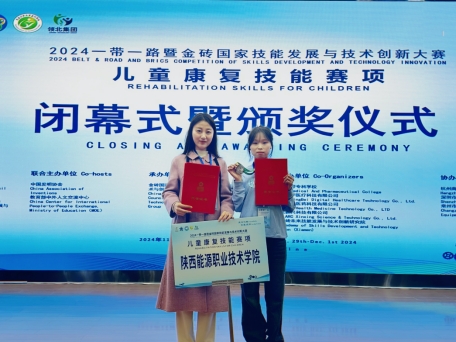 本次比赛获奖,是对学生个人努力与才华的高度认可,更是对我校师生职业素养和精神风貌的全面检阅,是一次专业技能的较量,是我校在职业教育领域深耕细作、注重实践教学成果的生动体现。通过参加国家级高水平国际赛事,充分展示了学校在康复治疗技术专业领域雄厚的教学实力和学生们的精湛技艺。学校秉承“追求卓越”的教育理念,将工匠精神传承、技能创新实践与专业建设深度融合,加强儿童康复人才的培养,培养更多具有国际视野和创新能力的高素质技术技能人才,为推动儿童康复诊疗技术的创新和发展,促进区域儿童康复事业高质量发展添砖加瓦。