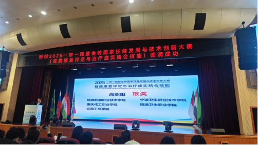12月20日至22日,2025一带一路暨金砖国家技能发展与技术创新大赛首届康复评定与治疗虚实结合技能赛项全国总决赛在南京卫生高等职业技术学院举行。经过激烈角逐,我校代表队在高职组总成绩排名第三,晋级世界赛,康复治疗技术专业2402班学生边思钰及2405班学生高琪琦荣获银奖,教师史安娜、王力彬获优秀指导老师。