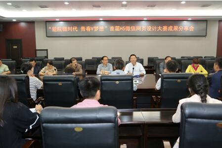6月2日下午,以“能院微时代 青春V梦想”为主题的首届H5微信页面设计大赛成果分享会在综合楼三层会议室举办,院长刘予东、党委副书记郭开龙、各系党总支书记、团总支书记及获奖学生代表参与分享活动。