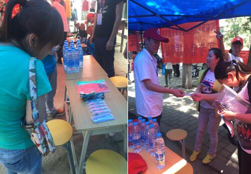志愿者精心准备了矿泉水、备用文具 志愿者热情为考生和家长服务