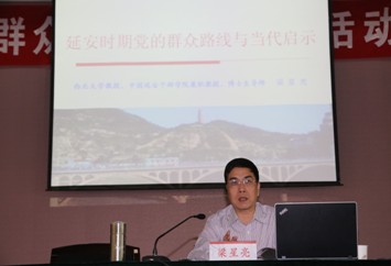 梁星亮教授在报告中指出:一坚持群众路线的基础是一切政治的关键在民众,二坚持群众路线的关键是把政治化与人性化融为一体,三坚持群众路线的途径是善于从群众的议论中发现问题和解决问题,四坚持群众路线的根本是做群众爱戴的“群众领袖”。