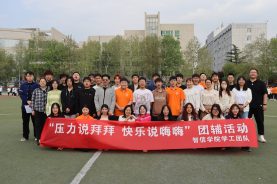4月10日下午,智信学院在操场开展以减压加乐为主题的团辅活动。学工办全体辅导员及学生代表共计30余人参与本次活动。